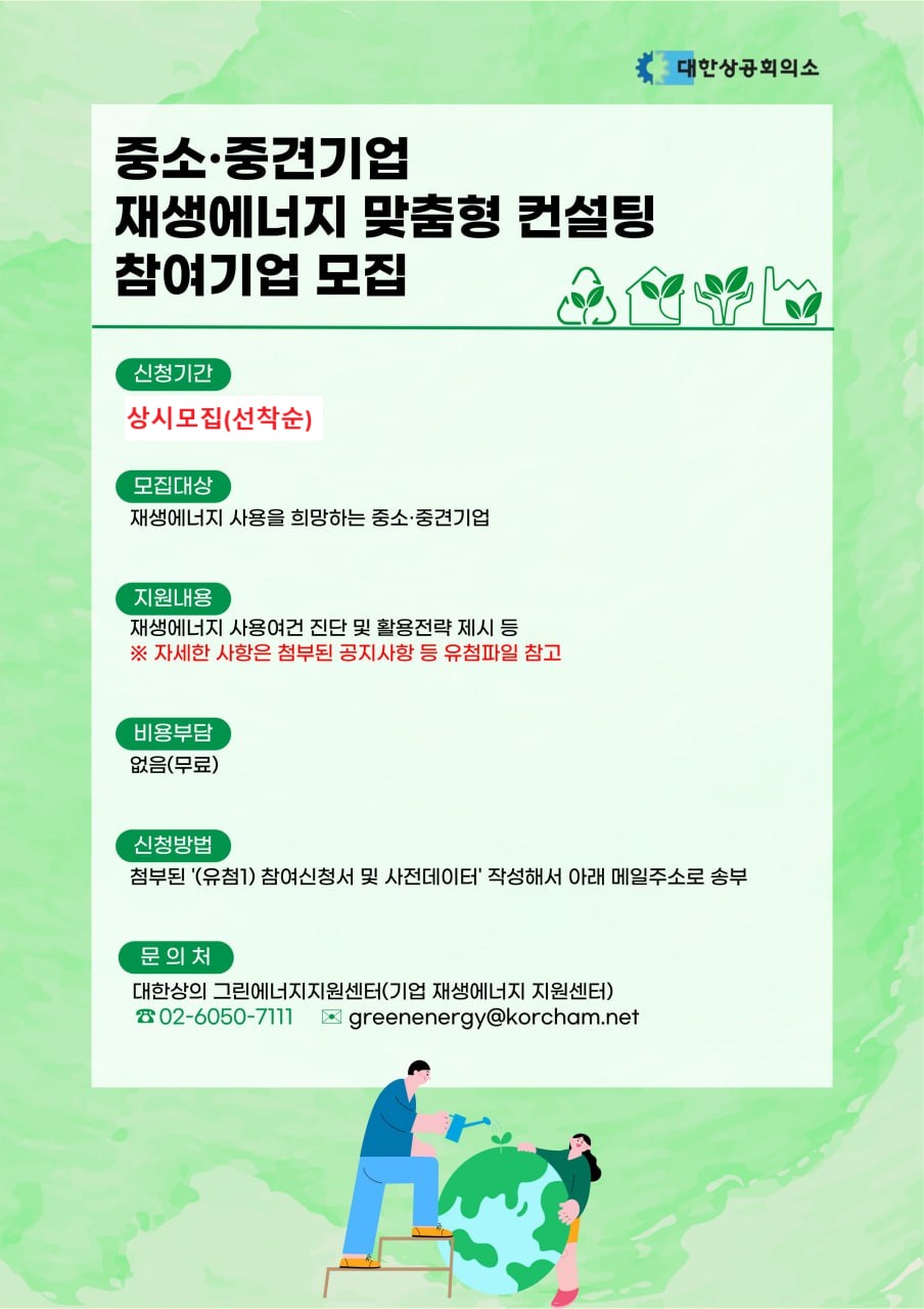| ‒ | 기업재생에너지 사용 컨설팅 참여기업 모집 공고 |